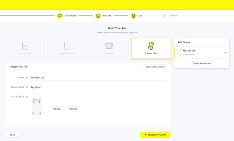 Peter Sellis, Director of Revenue Product : “We’ve streamlined Snapchat Ads Manager so advertisers can buy, optimize, target, and measure in one simple place. And we added Audience Filters to the tool, a big win for advertisers who want to run creative, targeted camera ads at an efficient price.”