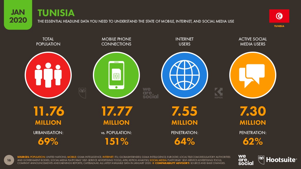 Vous trouverez dans ce rapport les chiffres clés du digital en Tunisie 2020 (cliquez ici si cela ne fonctionne pas pour vous), mais lisez ci-dessous pour les titres essentiels.