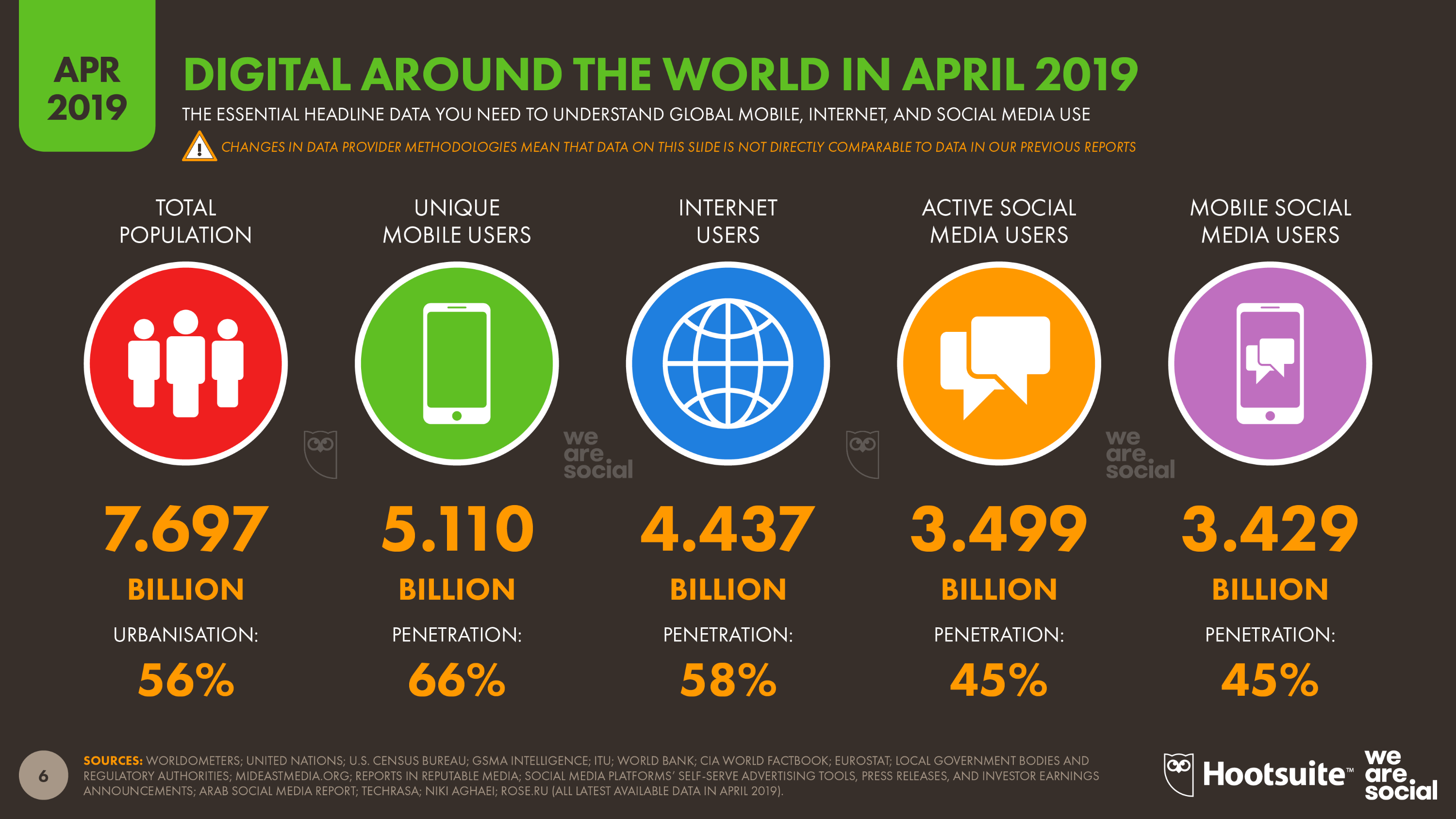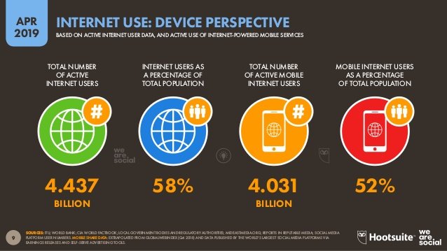 Le nombre d’internautes a augmenté de 8,6% au cours des 12 derniers mois, avec 350 millions de nouveaux utilisateurs, pour atteindre 4,437 milliards début avril 2019.😵