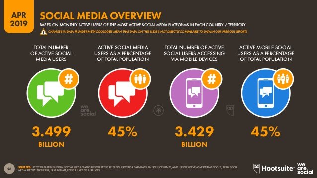 Plus de 3,4 milliards de personnes dans le monde utilisent les médias sociaux, dont environ 98% via des appareils mobiles.