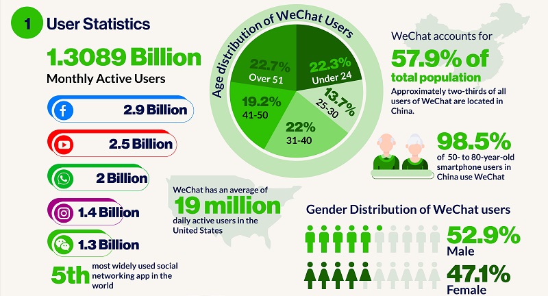 - Les deux tiers des utilisateurs disposant de comptes WeChat se trouvent en Chine.