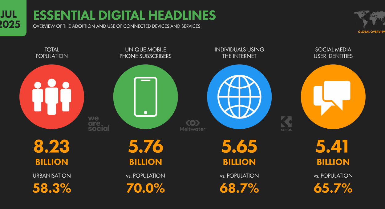 Le Digital Report 2025 publié par We Are Social et Meltwater le 23 juillet 2025 révèle une croissance continue de l’adoption numérique mondiale. Cette étude annuelle de référence analyse les comportements en ligne et l’évolution de l’écosystème digital.