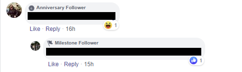 Comme vous pouvez le voir ici, il existe maintenant des badges ‘Anniversary follower’ et ‘Milestone follower’ pour les interactions de page, ainsi qu’une autre icône “Follower”.