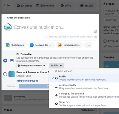 L’option n’est disponible que pour les pages Facebook comptant plus de 10 000 abonnés, mais elle offre un autre moyen de renforcer l’engagement et la portée en ciblant des utilisateurs spécifiques et intéressés, par opposition à un partage avec tout le monde.