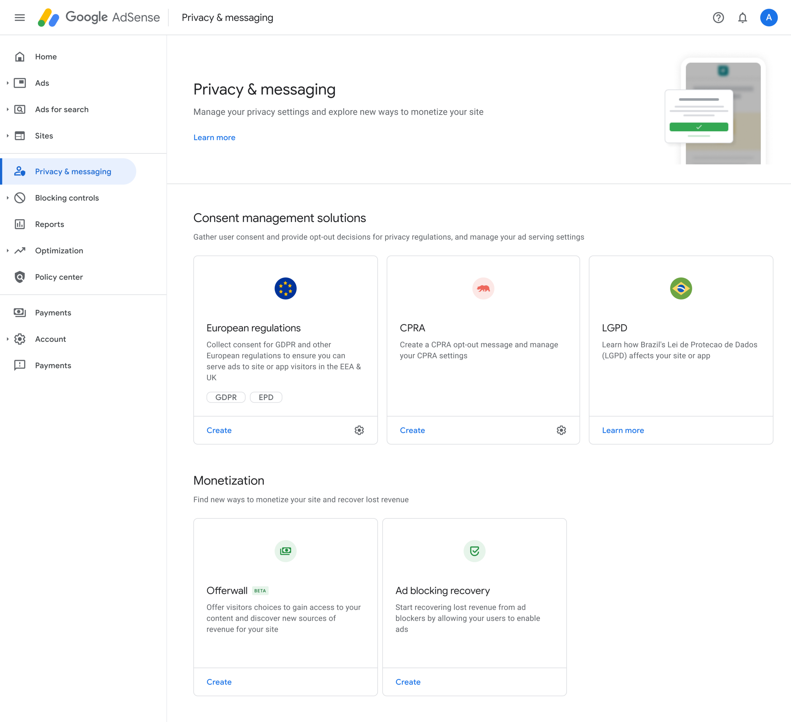 To set up an Offerwall, navigate to the “Privacy and Messages” tab, then click on the “Offerwall” card.