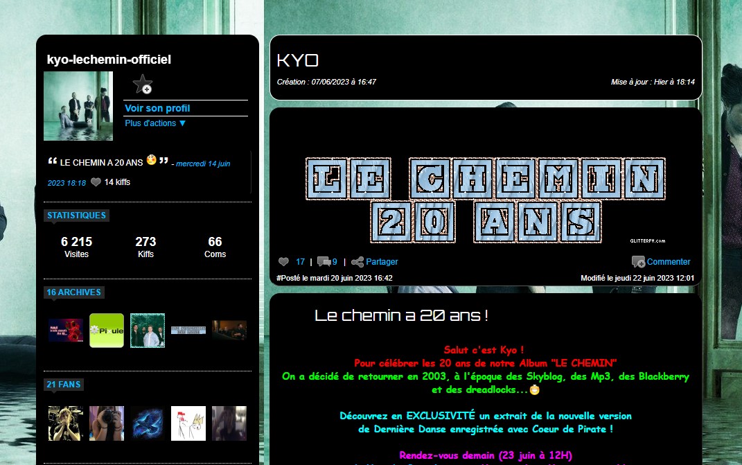 Skyrock a annoncé la triste nouvelle sur son Skyblog officiel (créé en 2007 !).