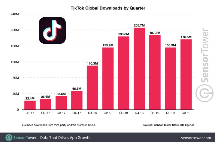 D’une part, la popularité de TikTok ne semble pas ralentir. Selon les dernières données de Sensor Tower, la courte application vidéo a dépassé 1,5 milliard de téléchargements dans le monde, ce qui en fait la troisième application non destinée aux jeux la plus téléchargée de l’année (après WhatsApp et Messenger).
