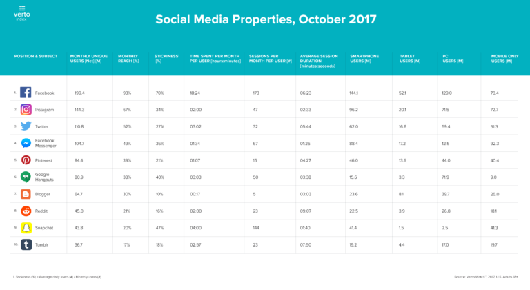 Here are the figures obtained in October 2017 by Verto Analytics: