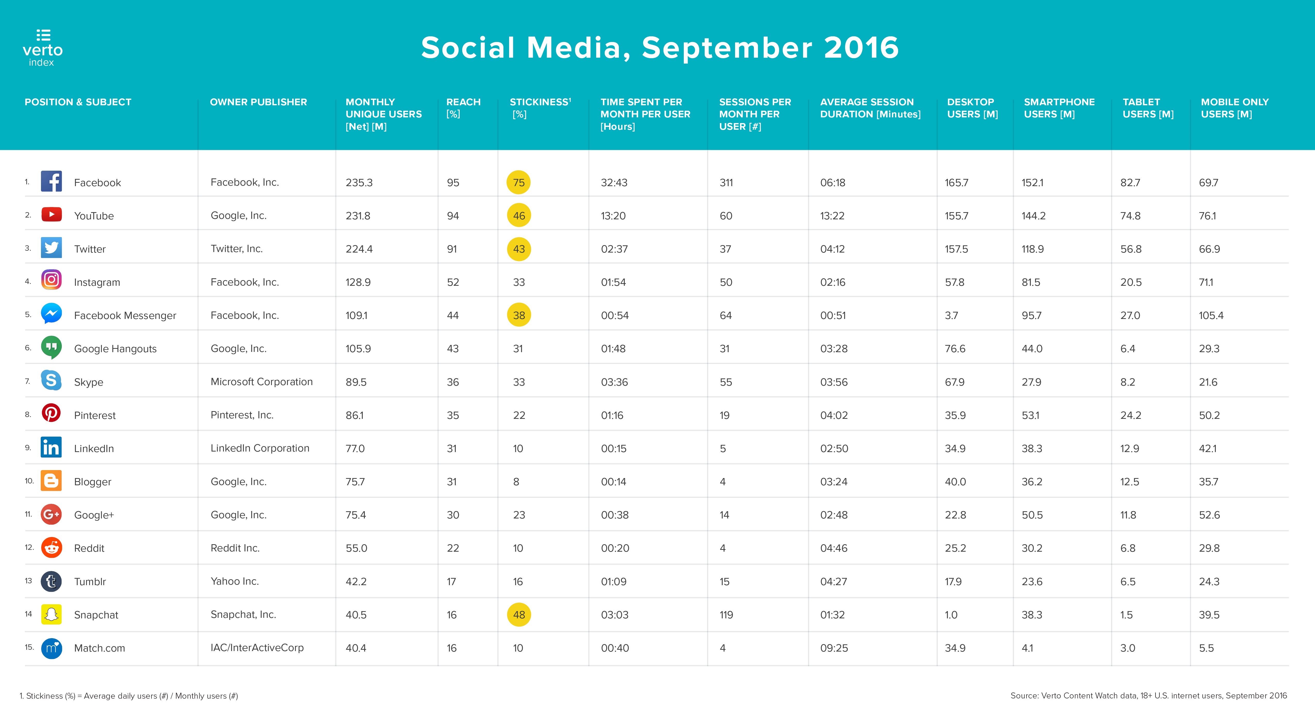 And here are the figures obtained in September 2016 by Verto Analytics: