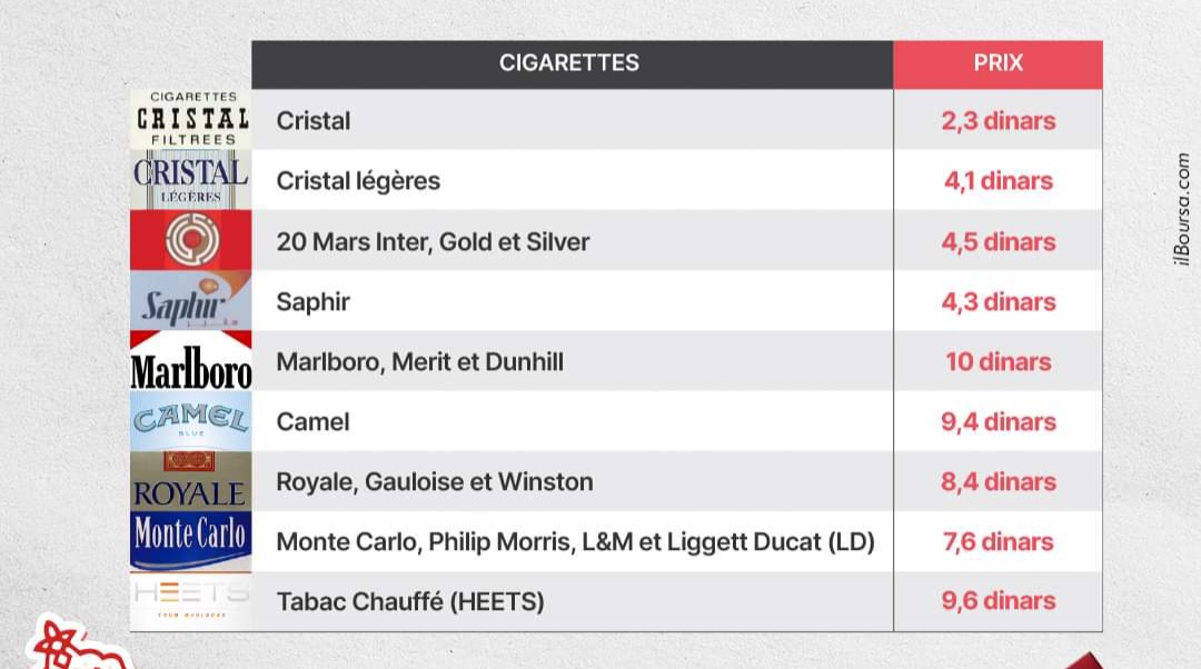 Le ministère des Finances annonce une nouvelle augmentation des prix de vente au public des paquets de cigarettes en Tunisie. La nouvelle grille des prix entrera en vigueur à partir du lundi 21 août 2023.