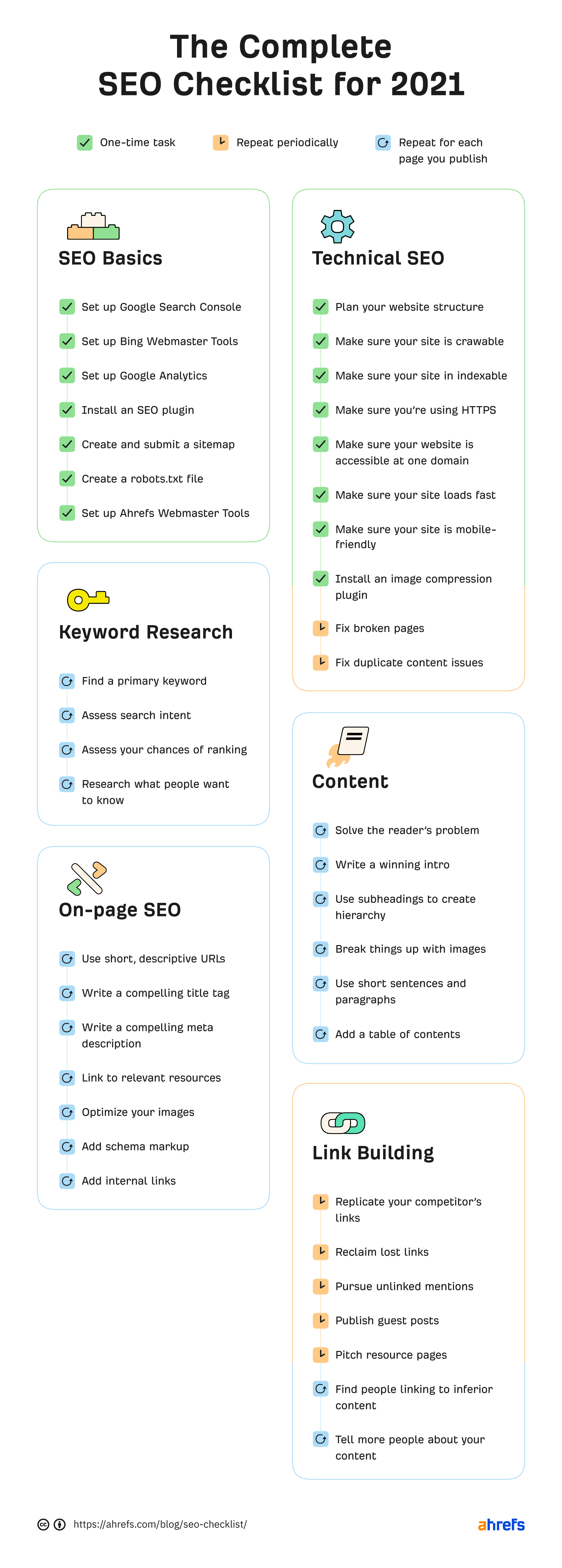 L’équipe d’Ahrefs partage sa liste de contrôle SEO dans cette infographie.