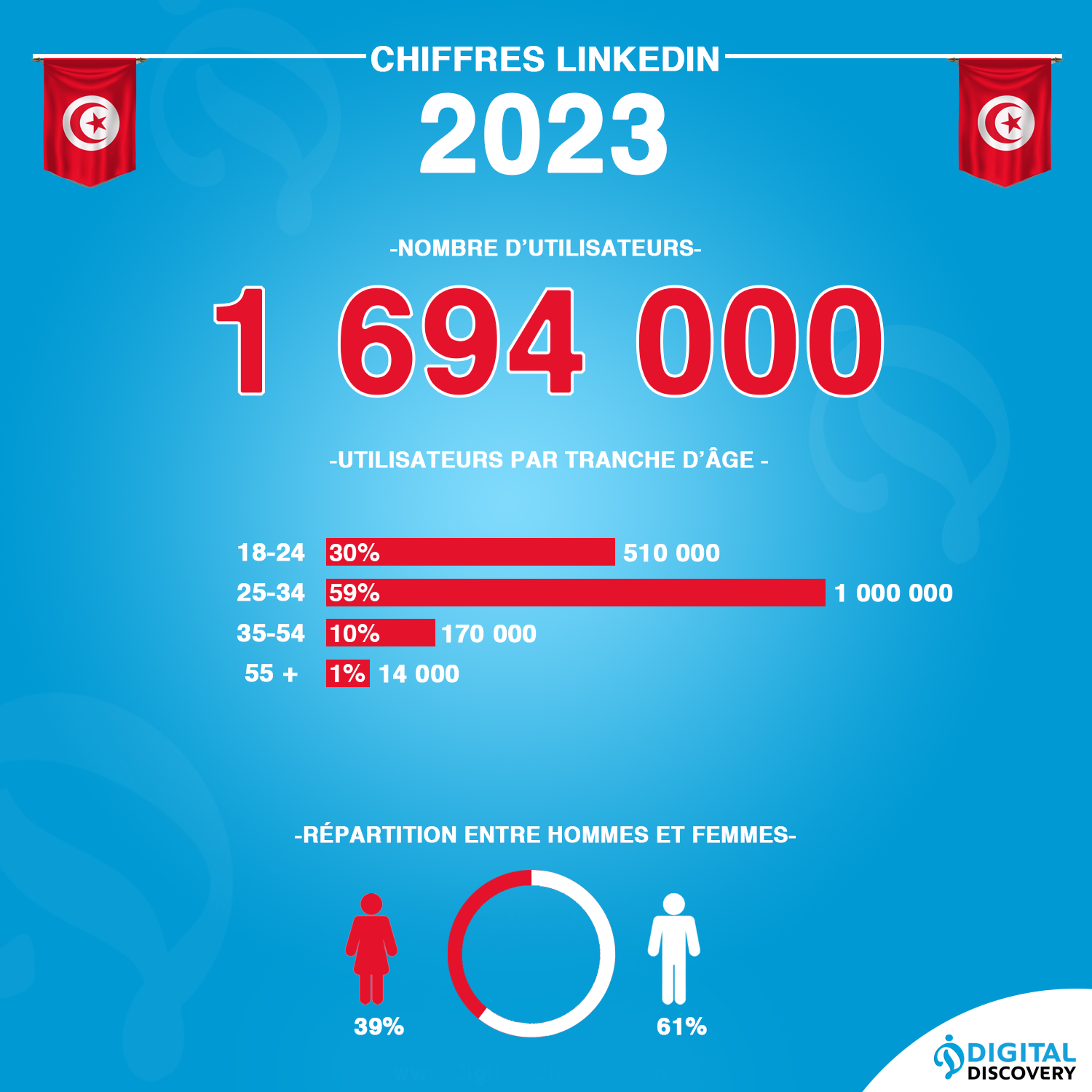 En Janvier 2023, LinkedIn annonce 1 694 000 de membres en Tunisie ce qui représente plus de 14.24 % de la population active Tunisienne. La plateforme a connu une augmentation du nombre de membres de 12.71 % sur l’année dernière.