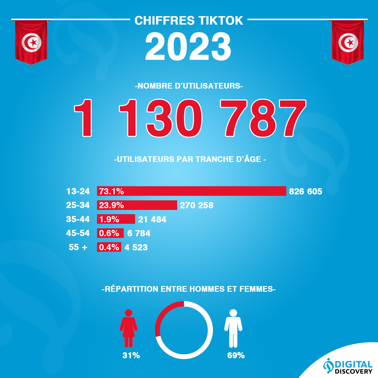 En janvier 2023, TikTok compte 1,130,787 utilisateurs actifs en Tunisie.