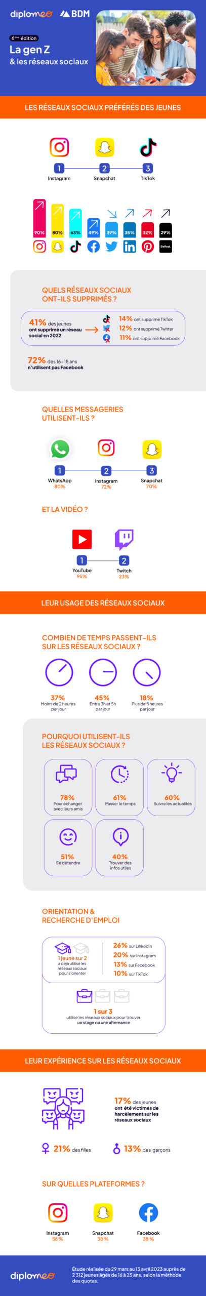 - Snapchat : 80 % (+4 % vs 2022),