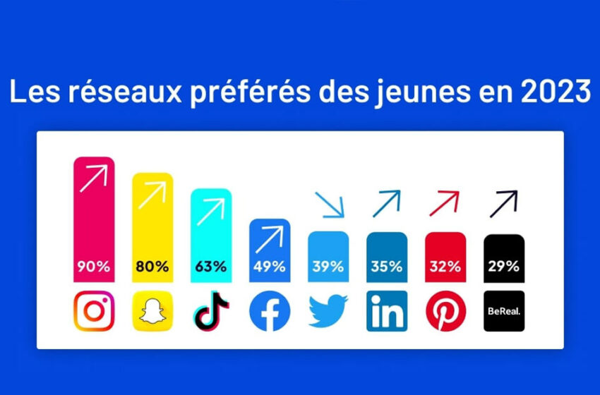 - TikTok : 63 % (+11 % vs 2022, +53 % vs 2020).