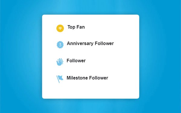 Comme vous pouvez le voir ici, il existe maintenant des badges ‘Anniversary follower’ et ‘Milestone follower’ pour les interactions de page, ainsi qu’une autre icône “Follower”.