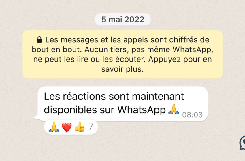 WhatsApp lance les réactions emojis aux messages Officiellement, WhatsApp lance le déploiement d’une fonctionnalité que les utilisateurs attendaient :...