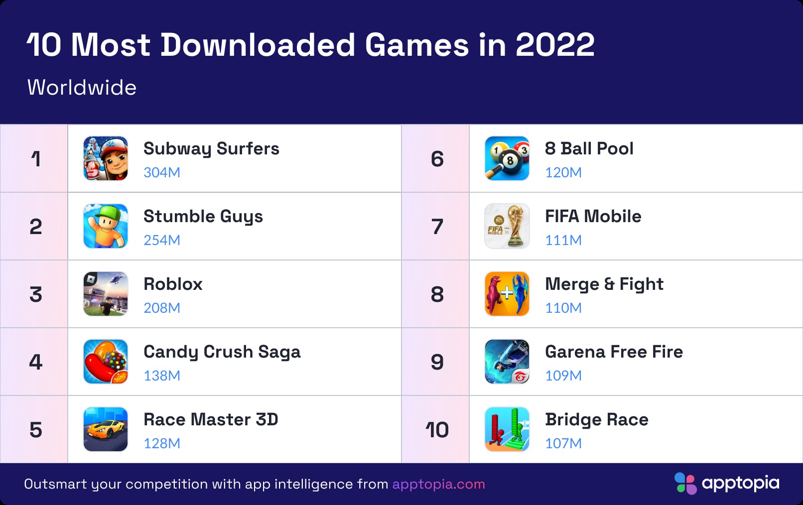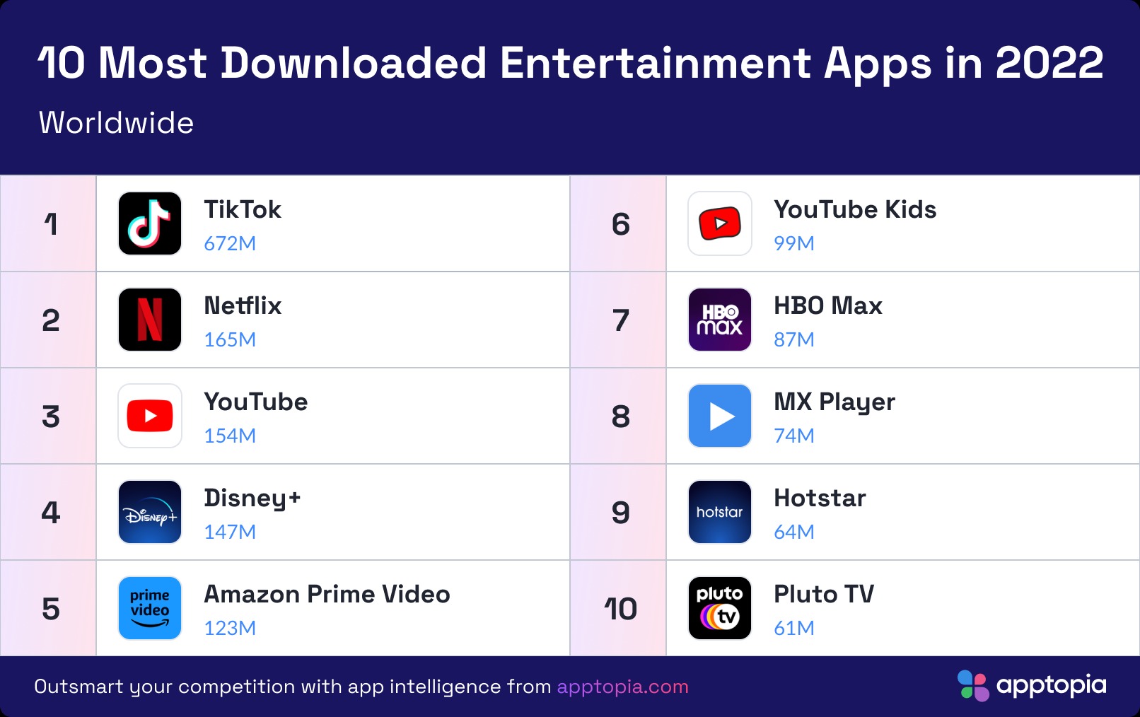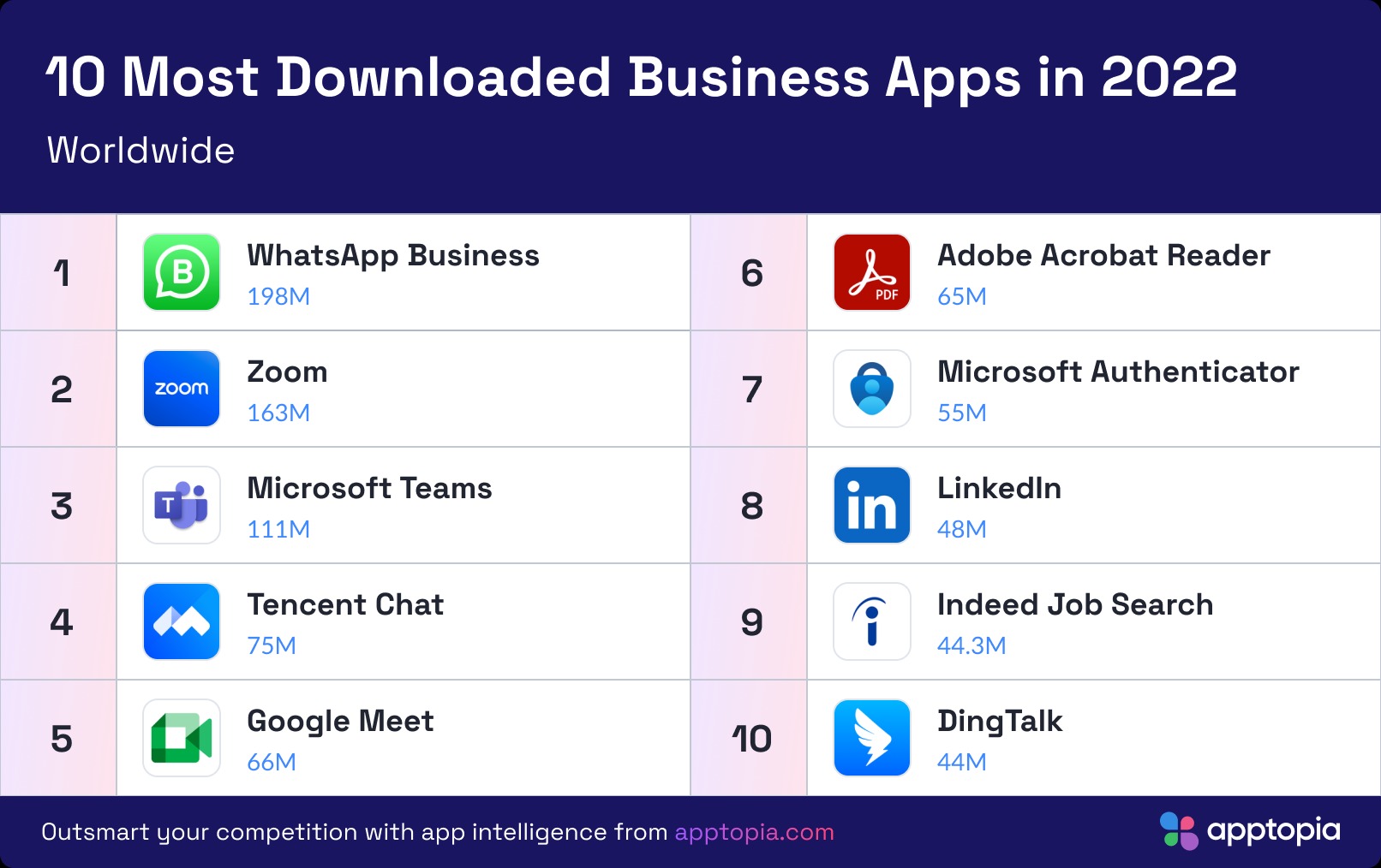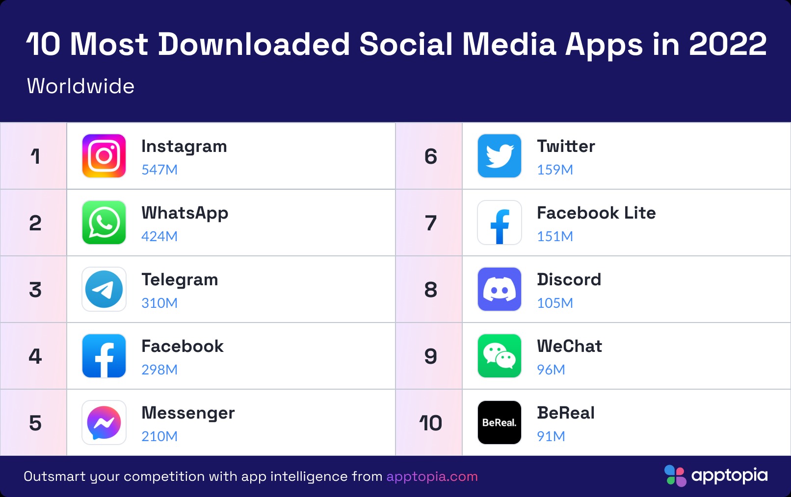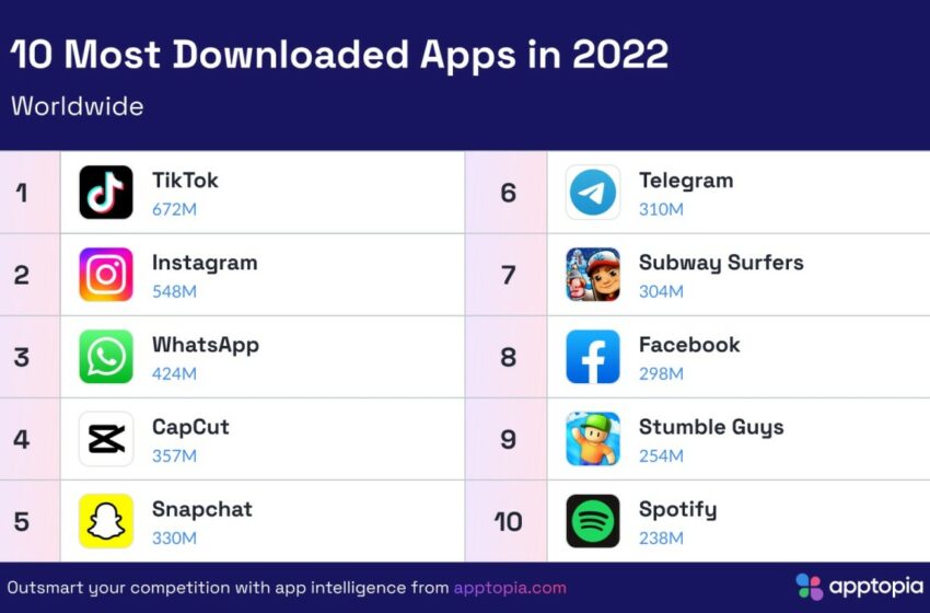 Apptopia présente son rapport 2022 des applications les plus téléchargées au monde. Comme chaque année, le Global App Comparator se base sur les données de l’App Store et du Google Play Store. La seule exception:
